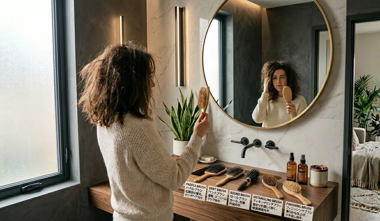 ヘアブラシは「なんとなく」で選ぶより、自分の髪の悩みに合ったタイプを選ぶことで毎日のスタイリングが楽になります。静電気・広がりが気になるならマイナスイオンタイプを、艶を出したいなら天然毛タイプを、という具合に悩みから逆算して選んでみてください。